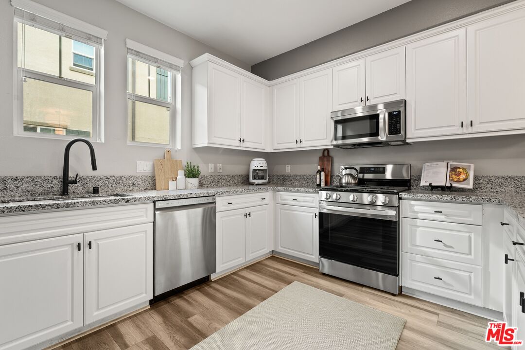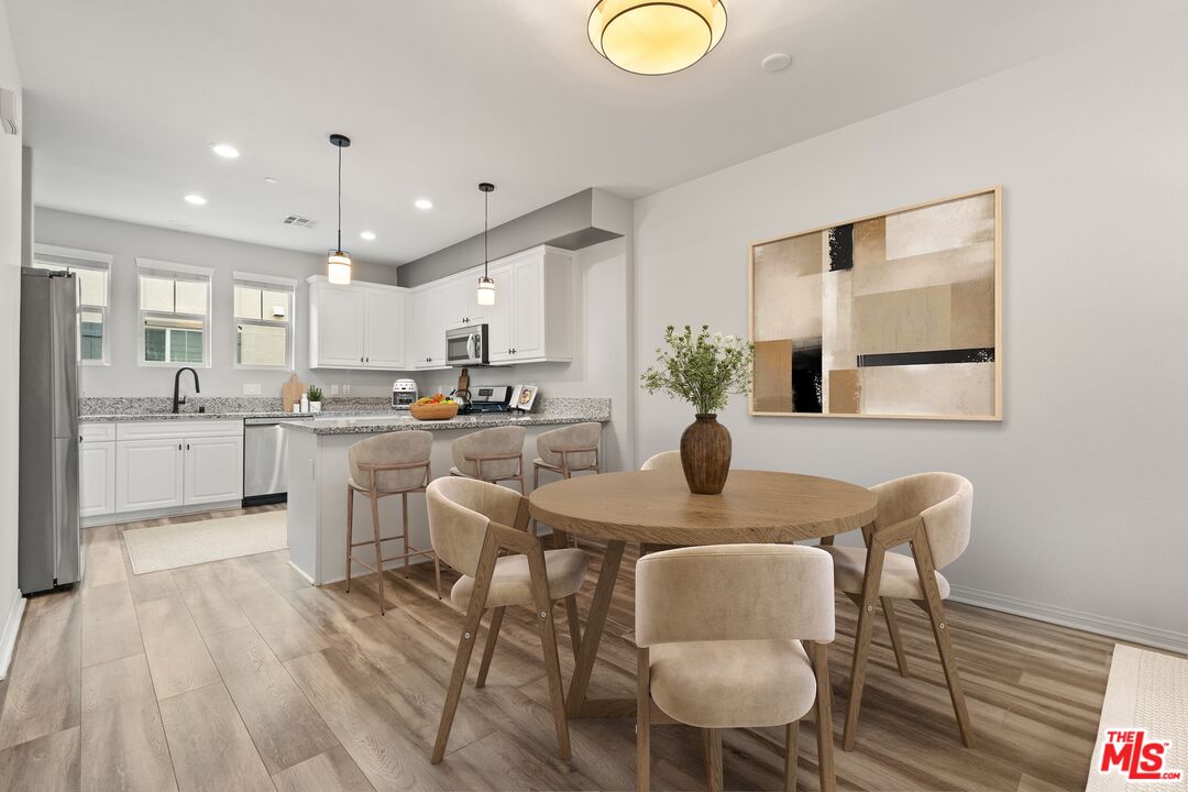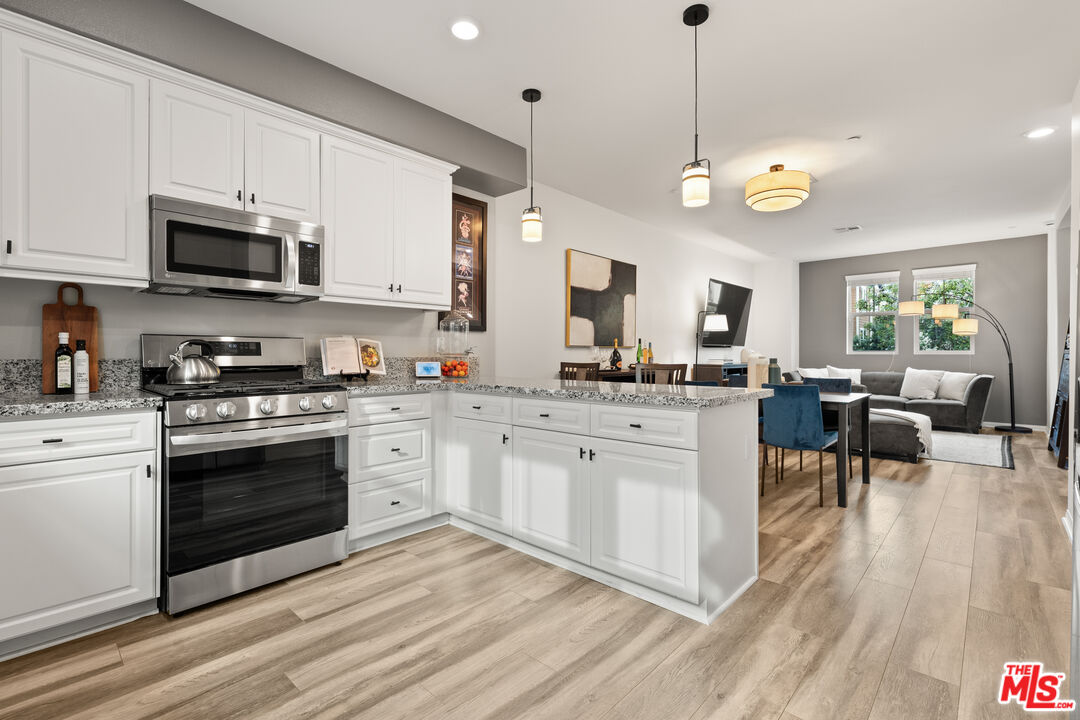 Welcome to 14109 W Birch Ln, a contemporary 3-story townhome offering the perfect blend of elegance and practicality in one of the Van Nuys most convenient locations. Featuring 2 bedrooms, 2.5 bathrooms, and 1,520 square feet of thoughtfully designed living space, this residence showcases modern updates and refined finishes throughout. Step inside to discover an inviting open-concept layout highlighted by laminate flooring, recessed lighting, and granite countertops that elevate every detail. The kitchen shines with white cabinetry & newer stainless steel appliances for effortless functionality. New light fixtures and updated half bath add a touch of sophistication to the main level. Upstairs, the primary suite offers comfort and style with a dual vanity bath and walk-in closet, while smart home features such as a Nest thermostat, doorbell camera, and security system provide modern peace of mind. Enjoy the convenience of an attached 2-car garage, central heat and A/C, and eco-friendly readiness with prewiring for solar and an EV charger.Ideally situated in the center of the valley, this home is just minutes from top shopping, dining, parks, and entertainment. Whether you're relaxing at home or exploring all Van Nuys has to offer, this townhome presents a rare opportunity to experience urban comfort with modern flair, all in close proximity to the Metro, convenient freeway access and area restaurants and shops.