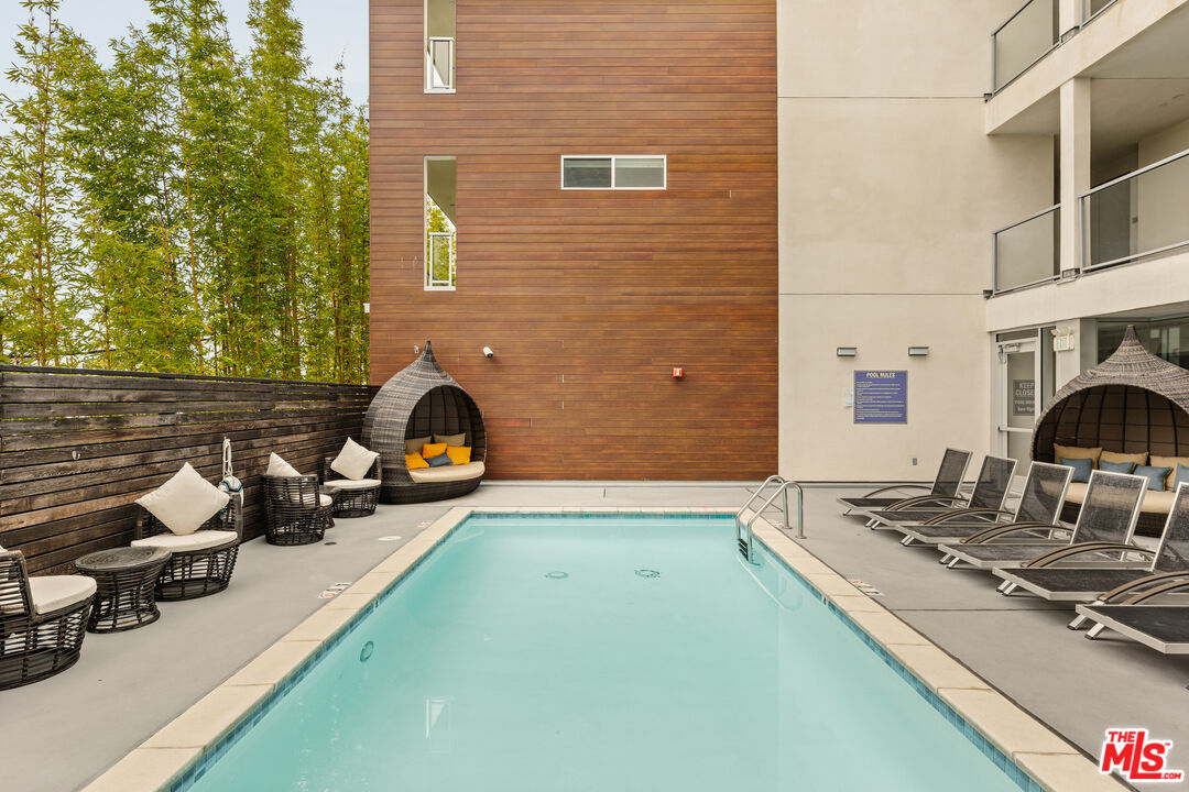 Welcome to a world of contemporary sophistication at X67 Lofts, one of Marina Del Rey's most sought-after modern communities. This third-floor corner residence is quietly tucked at the back of the building, offering rare privacy while being just down the hall from the pool, fitness center, and community room. Designed for both comfort and style, the spacious two-bedroom, three-bath floor plan blends urban design with coastal ease, accentuated by soaring ceilings, expansive windows, and open-concept living bathed in natural light. The chef-inspired kitchen anchors the home with European cabinetry, quartz countertops, a large center island, and stainless-steel appliances perfect for both entertaining and everyday living. Two private patios invite seamless indoor-outdoor flow, ideal for morning coffee or sunset relaxation. Retreat to the primary suite, complete with its own patio, a generous walk-in closet, and a spa-like ensuite bath featuring dual vanities and a sleek, frameless glass shower. The second bedroom and bath offer versatility for guests or a stylish home office. At X67 Lofts, residents enjoy an array of upscale amenities: concierge service, furnished lobby with coffee bar, fitness center, pool and sun deck, resident lounge, EV charging stations, and beautifully landscaped courtyards with BBQ areas. Two secured parking spaces, guest parking, and included DirecTV and high-speed internet complete this exceptional offering. Located in the heart of the Marina Arts District, you'll never need to get in your car movie theaters, restaurants, bars, Equinox, and grocery stores are all just outside your door. With beaches, shops, and the vibrant Venice and Abbot Kinney scenes nearby, and easy access to LAX and coastal bike paths, this is modern coastal living at its most effortless.