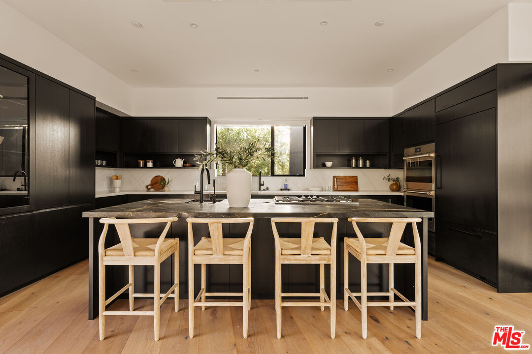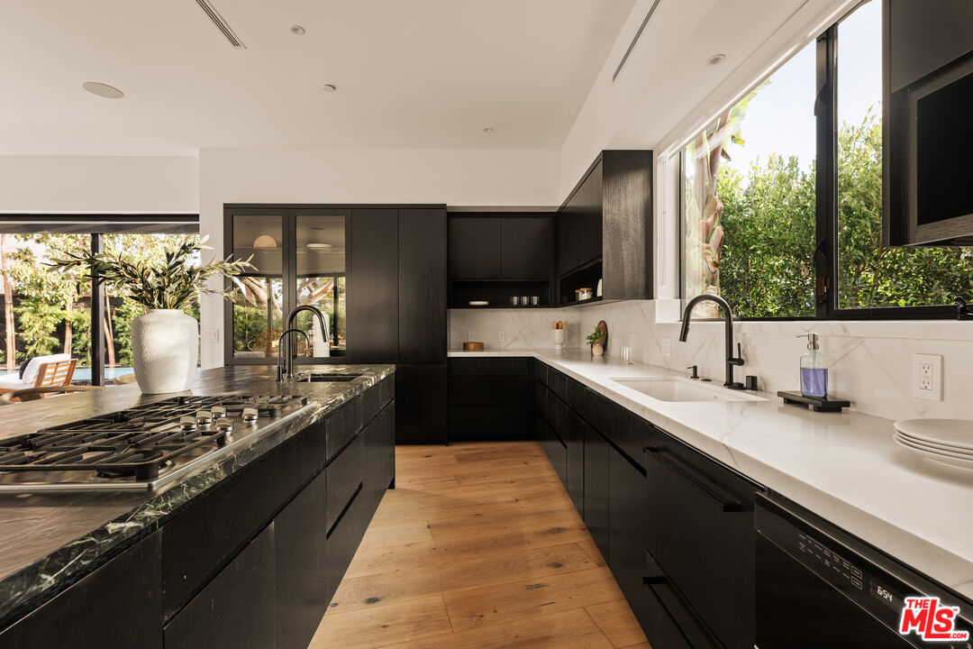 Call former Charger Joey Bosa's extraordinary residence at 5988 W 76th Street your own. An unparalleled architectural masterpiece, this custom-designed home blends contemporary sophistication with refined elegance on one of the most coveted streets in Westport Heights. Positioned on a generous corner lot and enveloped by privacy-enhancing breeze blocks and lush hedging, it redefines the standard for modern luxury living. From the moment you arrive, a stunning landscape with a tranquil reflection pool sets a serene tone. A custom metal-clad door opens to reveal a grand foyer adorned with exquisite wood inlay, offering a striking welcome. The expansive great room unfolds with dual terraces and sliding glass walls, creating seamless indoor-outdoor flow. Anchored by a cozy gas fireplace, the space connects effortlessly to a chef's kitchen featuring Miele appliances, bespoke cabinetry, and a natural quartzite center island. Beneath a cascading water feature lies the entertainment level, a true sanctuary featuring a full bath, wine and wet bar, cinema zone, storage room, and the standout home gym. Flooded with natural light from dual garden-facing light wells, this serene space - once the private training ground of NFL star Joey Bosa - is a wellness retreat like no other. Upstairs, a glass-clad staircase leads to three bedrooms, an office and a peaceful sitting area. The primary suite epitomizes private luxury with its spa-inspired bathroom and walk-in closet, thoughtfully designed to elevate everyday living. Outdoors, a resort-style backyard awaits: a glistening infinity-edge pool with jetted spa, a sleek outdoor BBQ kitchen with built-in dining space, and a modern fire pit set the stage for unforgettable gatherings and peaceful moments alike. Sustainably powered by an 8KV whole-home solar system, this residence offers the rare harmony of elegance, innovation, and intentional living. 5988 W 76th Street is more than a home - it's a lifestyle curated for the extraordinary.