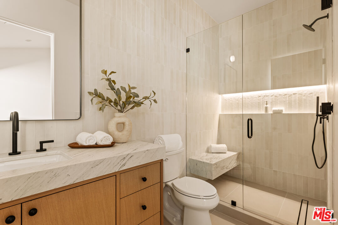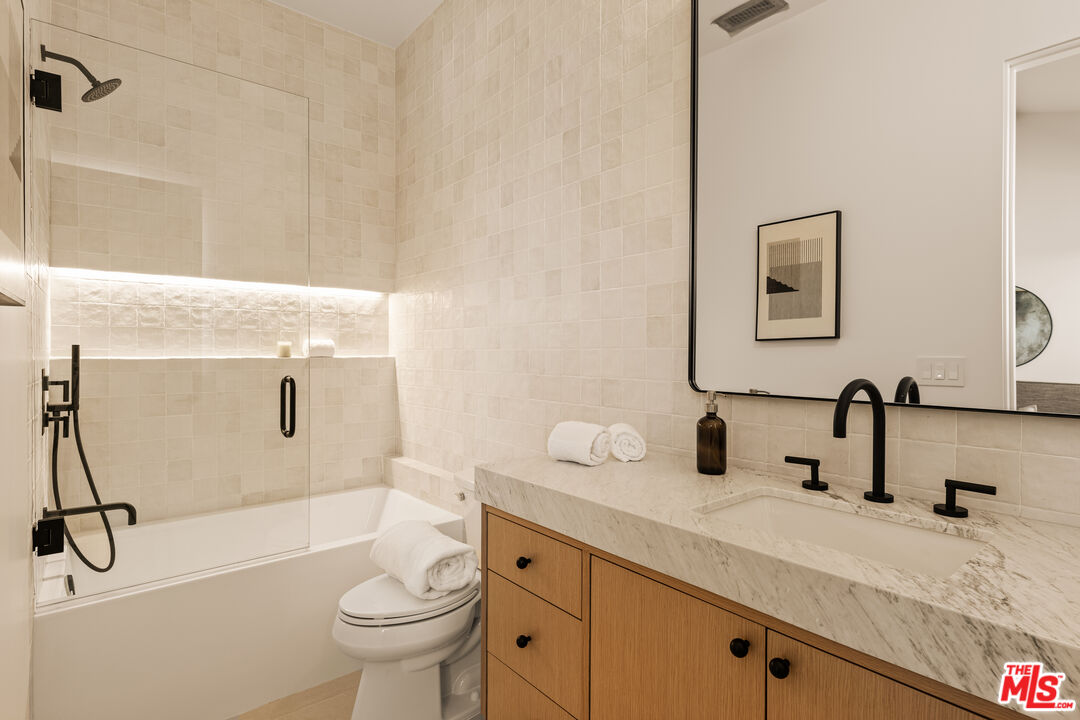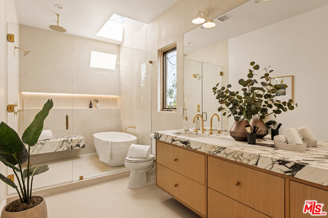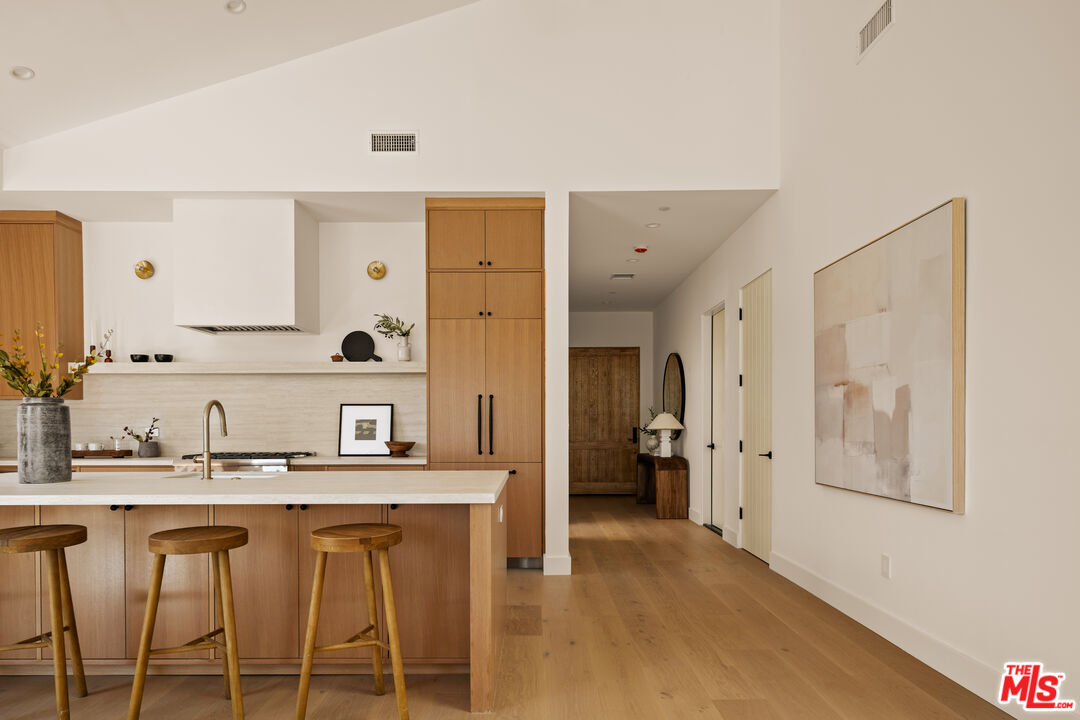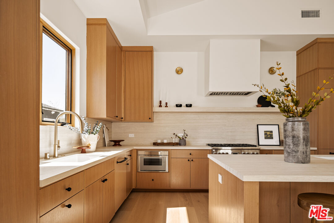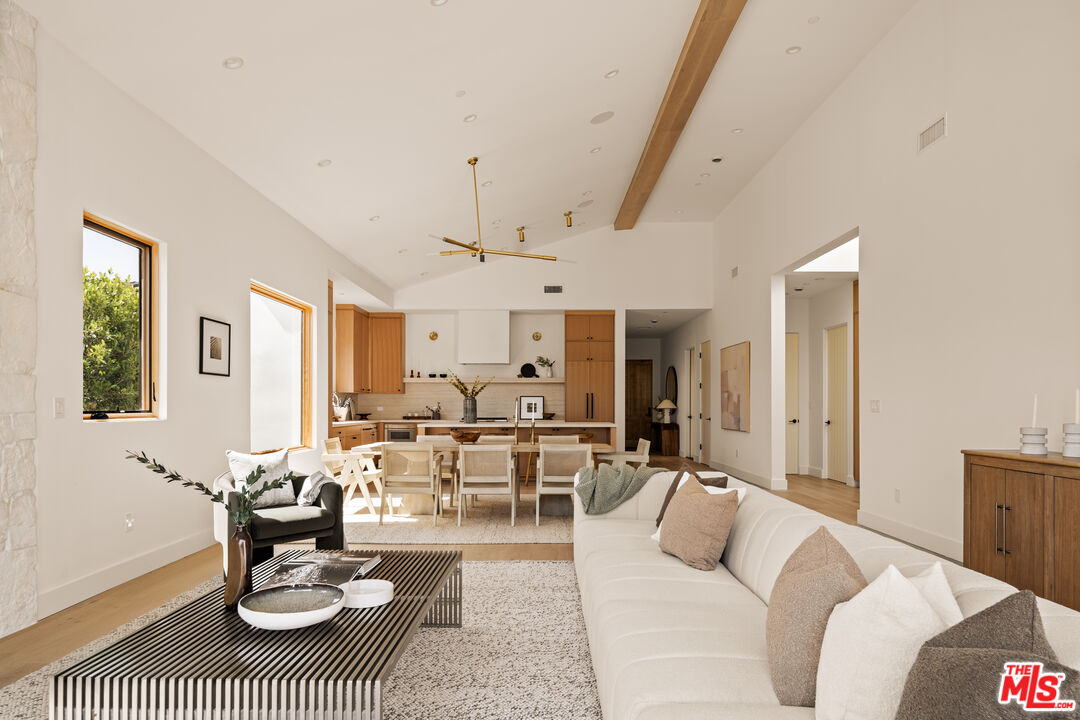 Welcome to your new haven in the highly coveted Kentwood neighborhood - a radiant single-story sanctuary thoughtfully redesigned to blend elegance, comfort, and effortless indooroutdoor living. Step through the welcoming foyer into a luminous open-concept living area, where abundant natural light highlights sophisticated finishes and white oak wide-plank flooring guides you through the heart of the home. At the center, a spacious living room dazzles with soaring 20-foot ceilings and dramatic scale, complemented by sliding glass doors that open to an inviting deck - the perfect setting for soaking up sunshine or hosting intimate gatherings with seamless indoor-outdoor flow. The chef-inspired kitchen is both stylish and functional, featuring porcelain Travertine-look countertops that evoke the beauty of natural stone while offering superior stain resistance. Custom cabinetry and premium appliances complete this space, making it ideal for both everyday living and elevated entertaining. Each of the home's four bedrooms is en suite, offering comfort and privacy for family and guests alike. The private primary suite is a true retreat, boasting vaulted ceilings, a generous walk-in closet, and a spa-like bath wrapped in striking Calacatta Viola marble. The front bedroom also features its own en-suite bath with Travertine countertops, providing a luxurious space for guests or extended family. Two additional bedrooms, each with their own beautifully appointed en-suite baths adorned with classic White Carrera stone, ensure every resident enjoys refined comfort. A chic powder room with Calacatta Monet finishes adds a polished touch for guests. A two-car attached garage with direct entry enhances the home's effortless convenience. Whether you're gathering beneath the expansive ceilings of the living room or enjoying morning coffee on the deck, this home invites you to experience indoor-outdoor living at its finest. Located in prime Kentwood - one of Westchester's most desirable enclaves - this single-story gem offers refined living in a vibrant, well-connected community. Welcome to the lifestyle you've been waiting for.