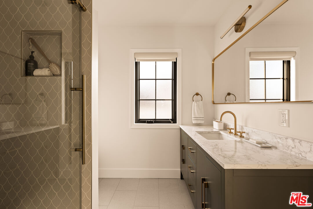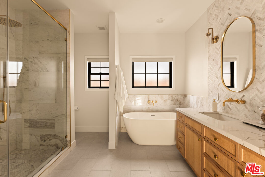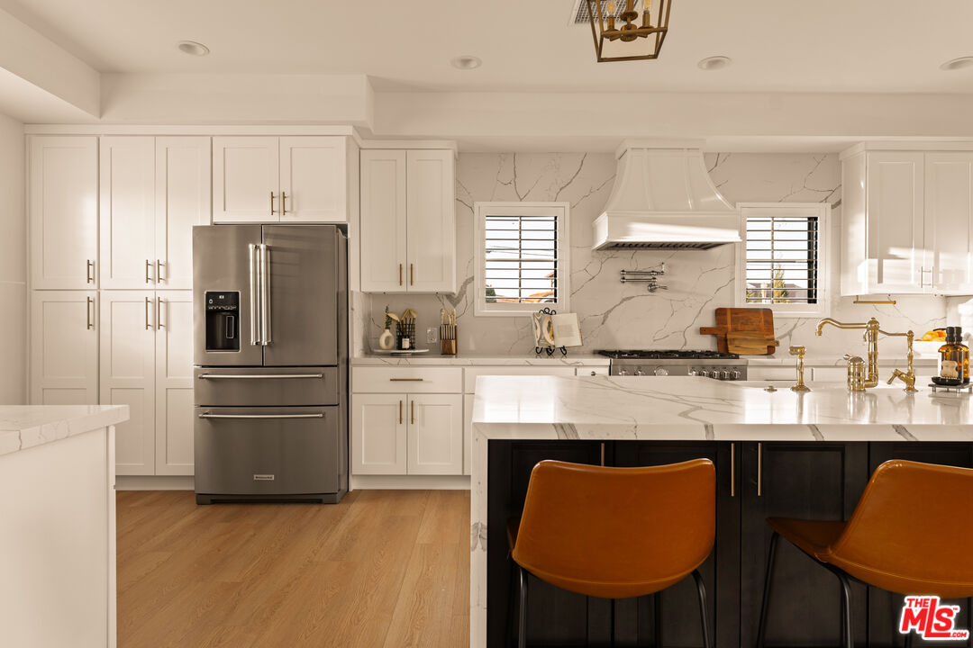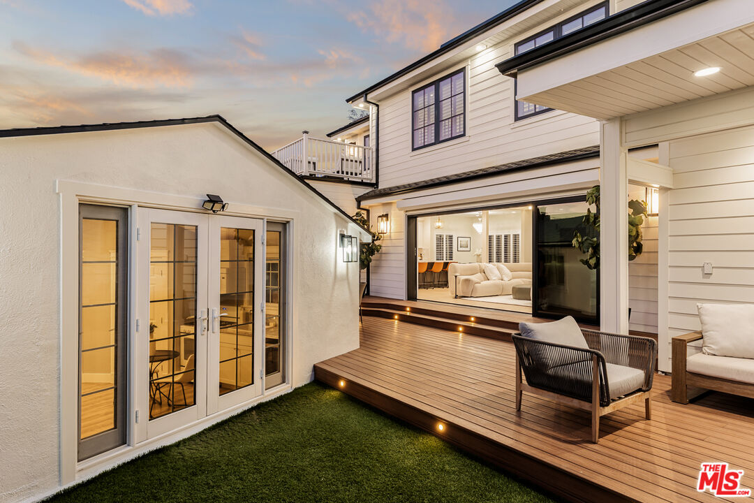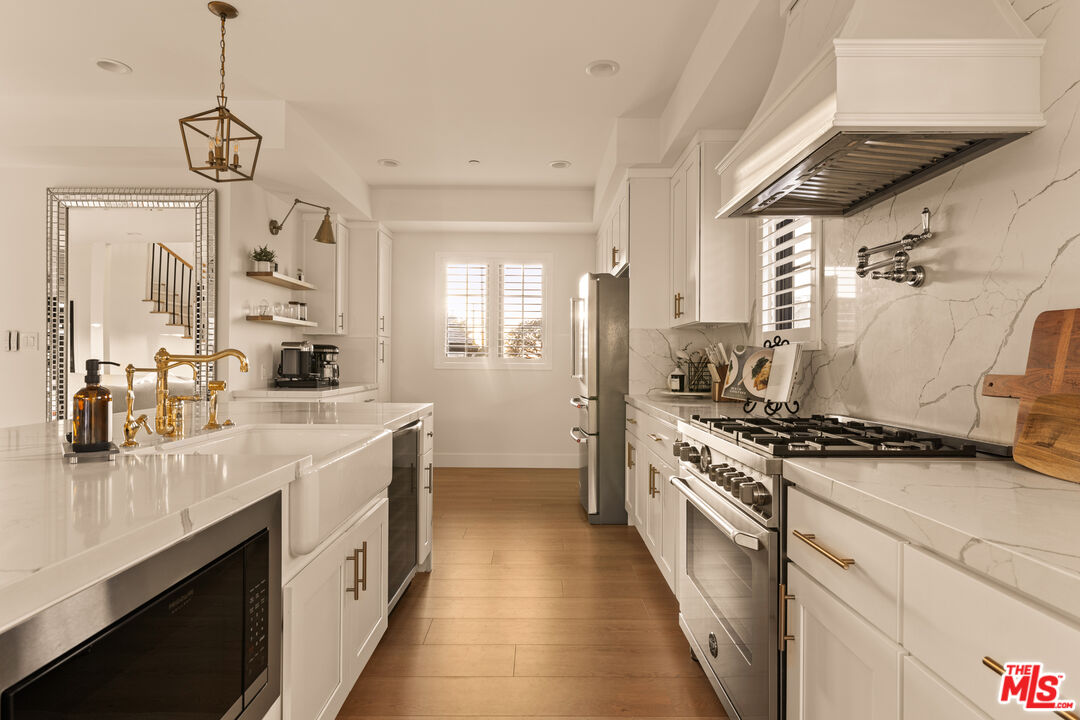 Perched on a premier corner lot in North Kentwood, this extensively rebuilt 2025 residence captures sweeping city, mountain, and peek-a-boo ocean views while offering the effortless indoor-outdoor lifestyle Southern California buyers seek. Originally built in 1953, the home underwent a comprehensive down-to-the-studs reconstruction and expansion. The property was rebuilt with entirely new electrical, plumbing, framing, insulation, ductwork, gas lines, drywall, windows, and structural systems throughout both levels. The result is a home that lives and feels like new construction. Step inside to discover a high-end gourmet kitchen, beautifully appointed with quartz countertops and backsplash, an oversized island, Bertazzoni range and hood, KitchenAid refrigerator, and a wine refrigerator perfectly designed for effortless entertaining. The adjacent great room, bathed in natural light, features a custom Milgard four-panel stacking slider that opens seamlessly to an expansive outdoor deck. Just beyond, the formal dining area and inviting family spaces create the ideal setting for intimate dinners or lively gatherings. On the first level, the luxurious primary suite awaits, complete with a custom walk-in closet and a spa-inspired bathroom showcasing marble finishes, quartz countertops, and a custom vanity. An additional bedroom or office on this level adds versatility and convenience. Ascend the custom stairway to the upper level, where two spacious secondary bedrooms are thoughtfully positioned on opposite sides of a generous family room. A convenient upstairs laundry room and a balcony with cozy seating provide the perfect place to unwind while taking in the home's panoramic vistas. Outside, the entertainer's backyard invites you to relax and enjoy the Southern California lifestyle with a built-in fire pit, outdoor TV, and two grassy play areas. The fully permitted ADU offers remarkable flexibility ideal for guests, extended family, or generating additional rental income. During the expansion, the home was thoughtfully enhanced with a new powder bath and stairway, while the front fade was completely reimagined with hand-cut Sierra White Limestone, creating a striking architectural presence and elevated curb appeal. Recent 2025 updates include a Presidential TL triple-layer shingle roof, fully paid Tesla solar panel system, custom security and weather shutters, fiberglass Andersen and Milgard windows with security window tint, solid wood doors throughout, plantation shutters and designer window treatments in every room, and a whole-home water softener and filtration system. Premium Arizona Tile finishes, all-brass plumbing fixtures, and Lutron smart lighting with LED switches complement the home's fully integrated smart-home system allowing you to control lighting, climate, and exterior features with ease from your phone.
