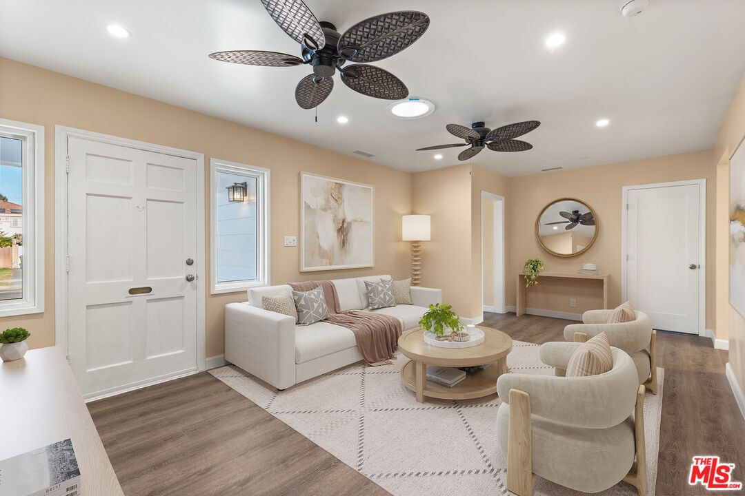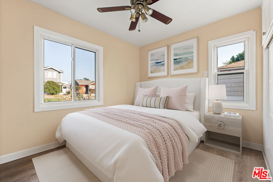 Welcome to your private retreat in the heart of Westchester, where style, comfort, and location come together effortlessly. This 4-bedroom, 2.5-bath residence is designed for those who love open, inviting spaces and a seamless indoor-outdoor flow. The moment you step inside, you're greeted by sunlit rooms enhanced by recessed lighting, double-paned windows, and cooling ceiling fans that create an airy, modern atmosphere. The kitchen, complete with a stove/oven combo, connects to a dedicated dining room, perfect for both everyday meals and special occasions. Just steps away, a laundry/mud room between the garage and kitchen adds convenience and keeps daily routines running smoothly. From the kitchen, doors open to a covered patio, setting the stage for memorable dinners, weekend gatherings, and breezy mornings with coffee in hand. Outdoors, your own private, walled-in backyard offers the perfect blend of serenity and space, whether you're entertaining under the stars, creating a lush garden escape, or simply enjoying a quiet afternoon. With ample storage, generous closet space, and a one-car garage, every detail is designed for convenience without sacrificing style. Tucked in a highly sought-after neighborhood, you'll enjoy easy access to Playa Vista, Silicon Beach, LAX, and all the dining, shopping, and parks that make Westchester such a vibrant community. Discover the perfect balance of privacy, style, and location in a home that truly stands apart.