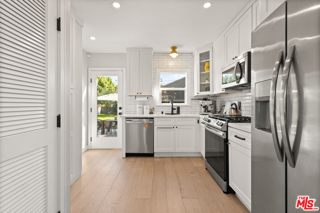 Set on a serene, tree-lined street in the coveted Westport Heights neighborhood, this beautifully remodeled Westchester residence blends timeless charm with modern sophistication. Reimagined in 2020, the thoughtfully curated 1,001-square-foot floor plan lives impressively large, showcasing sun-filled interiors that capture warm southern and western light throughout the day. At the heart of the home, a bright gourmet kitchen elevates daily living with white shaker cabinetry, stainless steel appliances, a gas range, quartz countertops, and a classic subway tile backsplash. Its seamless connection to the backyard enhances both functionality and flow, making it an inviting hub for cooking, gathering, and entertaining. Rich hardwood floors continue into the adjoining living and dining areas, where an open, airy ambiance creates effortless continuity. The private quarters offer equal comfort and style. The full primary suite features dual sinks in an elegantly finished bathroom and direct access to the deck and expansive grassy yard, an ideal retreat for quiet mornings or evening relaxation. Two additional bedrooms and a second remodeled bath provide versatility for guests, family, or a dedicated office. Outdoors, the generous backyard becomes a natural extension of the interior, offering abundant room for entertaining, play, and future possibilities. The finished 360-square-foot garage adds remarkable flexibility--perfect as a studio, home gym, or workspace, and an excellent starting point for a future ADU. A charming storage shed further expands the property's potential as a creative retreat, office, or playroom. Turnkey, stylish, and positioned in one of Westchester's most desirable pockets, this Westport Heights gem delivers modern comfort, thoughtful design, and the welcoming neighborhood atmosphere that makes coming home a true pleasure.