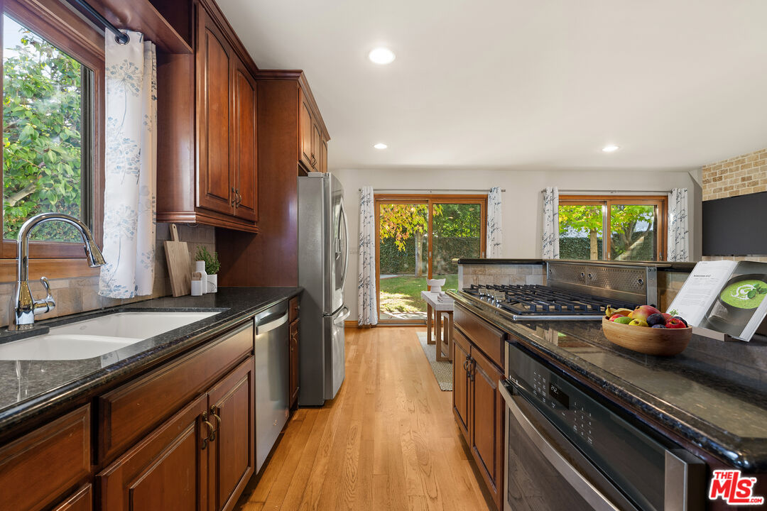 Draped in vibrant bougainvillea and enriched with classic Mediterranean character, this North Kentwood residence offers an exceptional leasing opportunity in one of the neighborhood's most desirable pockets. Sun-filled interiors, 9-foot ceilings, and hardwood floors throughout create a warm and elegant atmosphere from the moment you step inside. The main level features an effortless flow between spacious living and family areas, including an inviting fireplace-centered living room ideal for relaxed gatherings. The open kitchen, anchored by a generous island, overlooks the expansive, park-like backyard. Wood-framed sliding glass doors invite seamless indoor-outdoor living, leading to a wide grassy lawn framed by mature trees that provide both shade and serene privacy. Two versatile bedrooms and a full bath on the main floor accommodate guests, remote work, or multi-generational needs, while recessed lighting, central heat, and air conditioning ensure comfort in every season. Upstairs, the extra-large primary suite offers a true retreat, complete with vaulted ceilings, a cozy fireplace, a walk-in closet, and south and west-facing windows that capture natural light throughout the day. Two additional bedrooms and a well-appointed hall bath complete the upper level. A generous front balcony extends the living space outdoors and offers a peaceful setting to enjoy coastal breezes. Set on a quiet, private street just moments from Westchester's most beloved amenities, this exceptional lease combines space, style, and the relaxed sophistication that defines North Kentwood living, a rare opportunity to experience comfort and charm in an exclusive setting. Minimum 720 credit score, and income must be at least 2x the monthly rent.