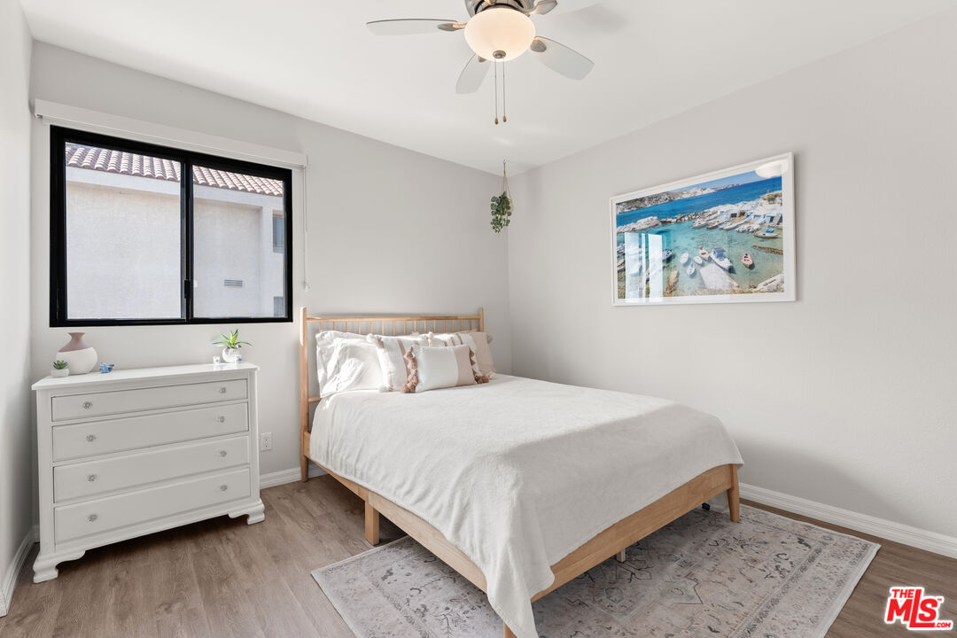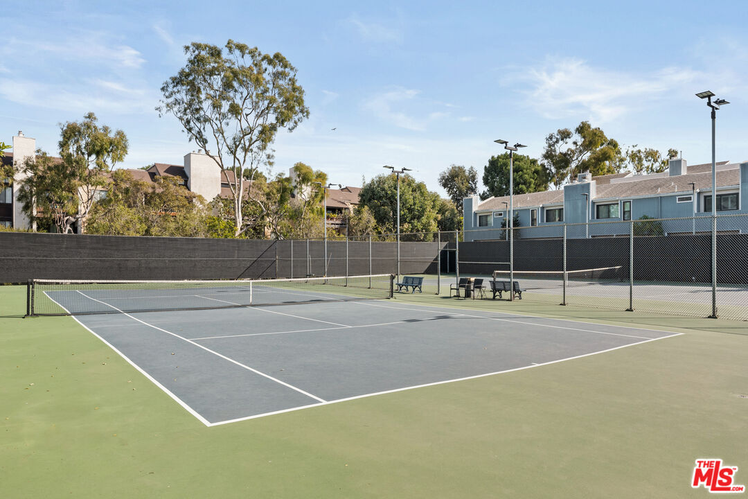 END-UNIT TOWNHOUSE WITH PRIVATE GARAGE - This highly coveted end-unit 3-bedroom, 2.5-bathroom townhouse offers 1,414 square feet of beautifully updated and curated living space, in the highly desirable Playa del Rey community. A standout feature of this home includes a private, direct-access two-car garage, enhanced with epoxy flooring, built-in cabinetry, and a workshop area, plus a separate laundry room with ample storage or mudroom potential. The home is a harmonious blend of modern elegance, coastal charm, and ultimate convenience. As you step inside, you'll be greeted by the warmth of hardwood floors on the main level, complemented by updated vinyl flooring on the stairs and upper floor. The open-concept design invites seamless living, with a custom cut-through window connecting the kitchen to the living room, ideal for entertaining or casual evenings at home. A decorative gas fireplace adds sophistication and coziness to the living area, while the private patio offers a peaceful retreat for outdoor lounging, dining, or quiet moments. The kitchen features a brand-new stainless steel refrigerator alongside a wine fridge, dishwasher, stove, and microwave. The adjacent dining area provides an intimate yet functional space for family meals or lively dinner parties. A convenient powder room rounds out the first floor. Upstairs, the primary suite offers a serene retreat, complete with a walk-in closet and a freshly updated ensuite bathroom boasting a sleek vanity and pocket door for added privacy. Two additional bedrooms and a well-appointed bathroom provide versatility, whether for family, guests, or a home office. Beyond the home, the resort-style amenities elevate your lifestyle. Enjoy a sparkling pool, two relaxing spas, and recreational courts for tennis, pickleball, and paddle tennis, along with a fully updated gym complete with men's and women's saunas. Don't miss the chance to call this exceptional townhouse your home. With its unbeatable location, modern upgrades, and access to a vibrant coastal community, this is Playa del Rey living at its finest.
