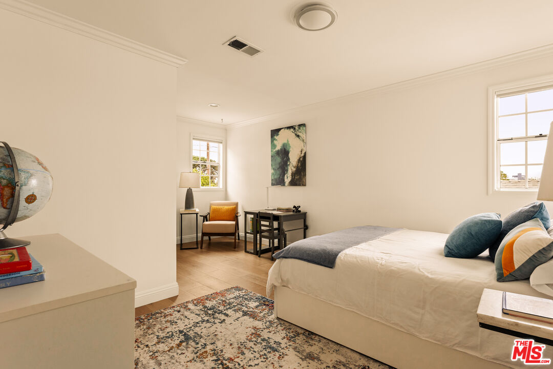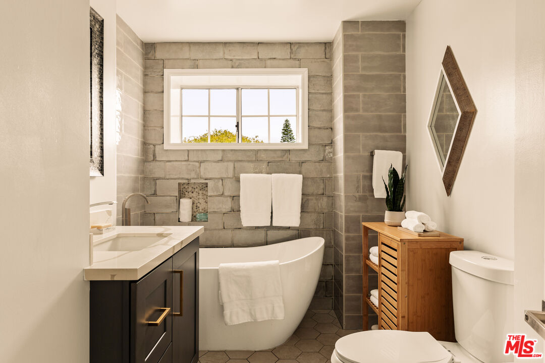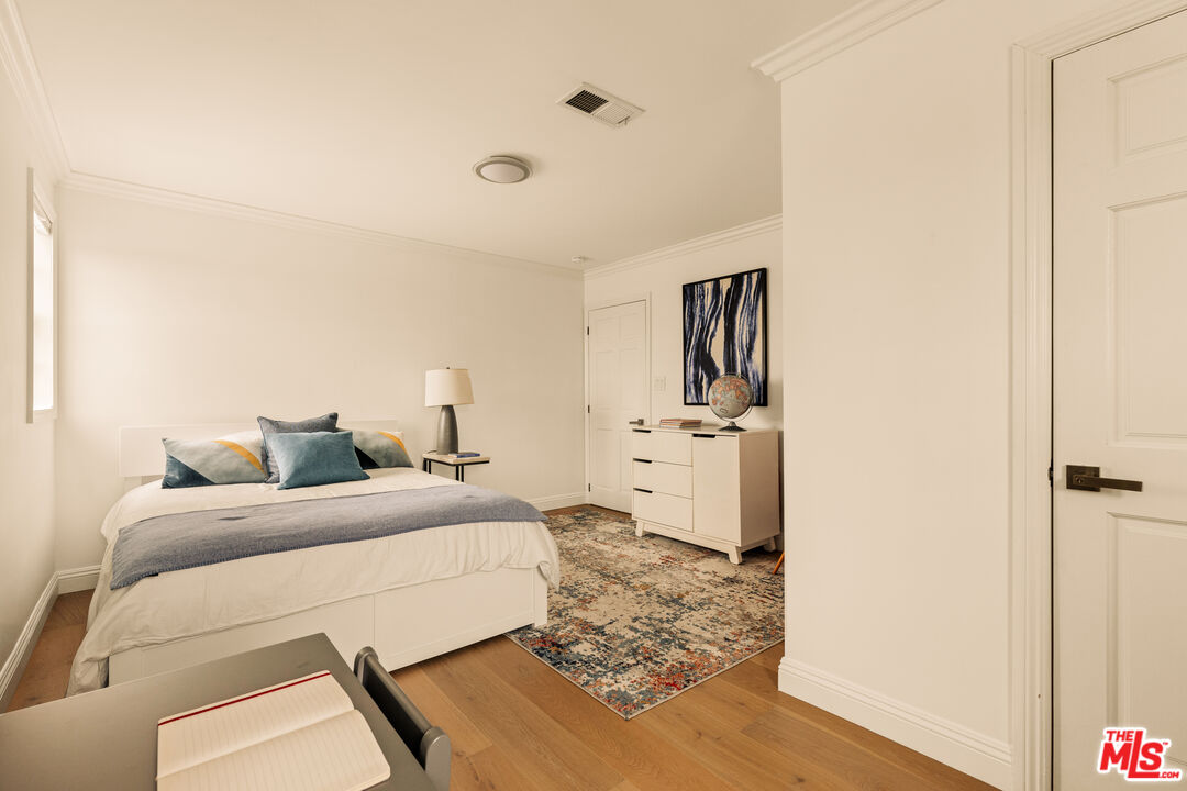 Beautifully remodeled and move-in ready, this five-bedroom, four-bath Kentwood residence blends modern comfort with timeless appeal. Natural light fills the spacious living room and flows into the open kitchen, where a generous island serves as the centerpiece for everyday meals and effortless entertaining. With stainless steel appliances, abundant cabinetry, and expansive counter space, this kitchen is as functional as it is inviting. The main level features a sophisticated primary suite, complete with a spa-like bath and custom walk-in closet, offering the convenience of single-level living. Upstairs, three additional bedrooms share a full bath, providing flexibility for family, guests, or a home office. A detached guest suite with a private entrance overlooks the backyard, perfect for extended stays or a creative workspace. Set on an extra-large lot, the home offers outdoor living at its best, with a sunlit deck, landscaped yard, and a rare double garage. Recent upgrades, including engineered hardwood floors, newly tiled baths, newly painted exterior, plantation shutters, and a newer roof, add comfort and peace of mind. Located in the heart of Westchester, the home offers easy access to neighborhood favorites like Tomat Restaurant and Triangle Wines, Westchester Golf Course, and the vibrant Playa Vista Runway. Just minutes from LAX, Silicon Beach, and the shoreline, it places the best of the Westside right at your doorstep.