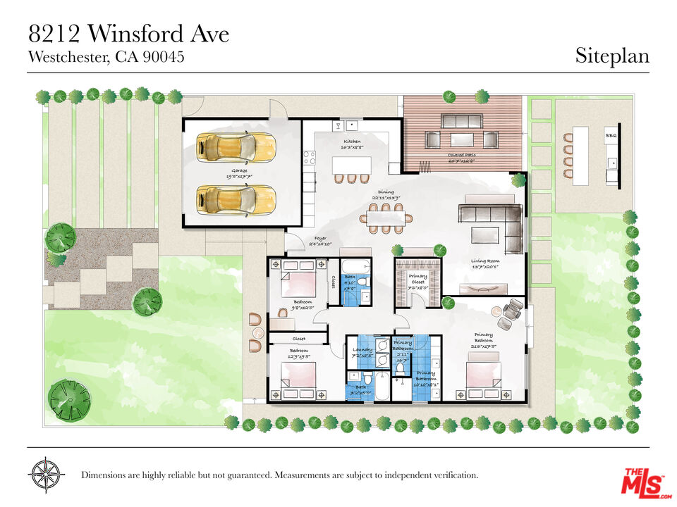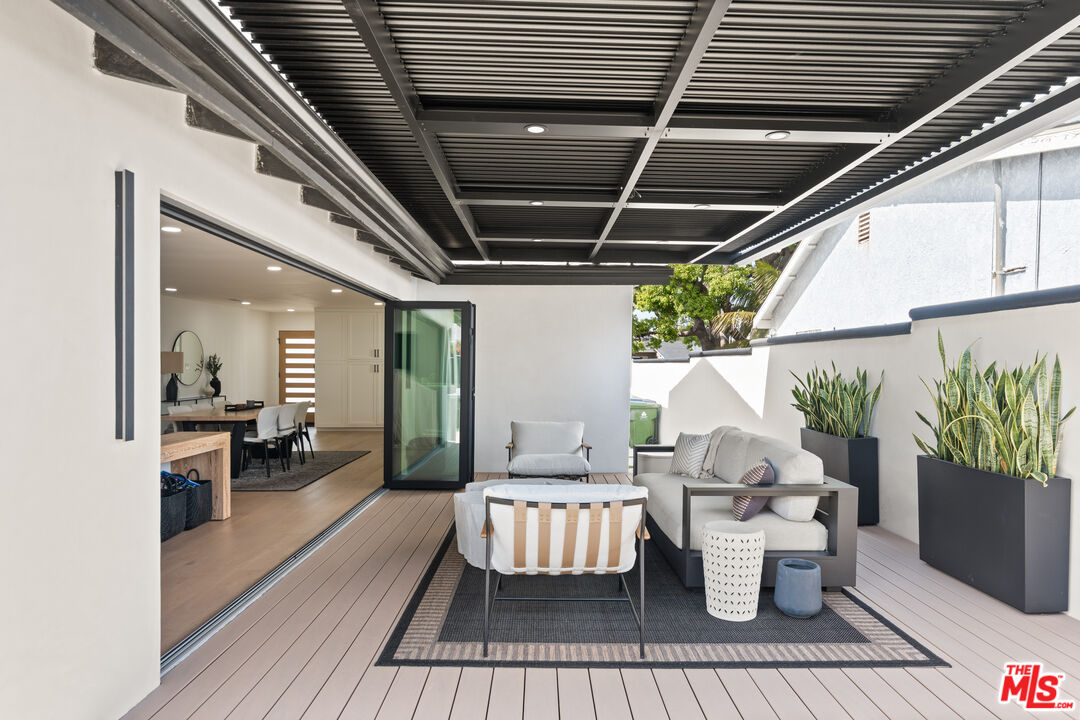 Discover a truly exceptional residence where designer sophistication meets effortless comfort. This completely remodeled 3-bedroom, 3-bath home showcases impeccable craftsmanship and thoughtful detail at every turn, offering a rare opportunity to own a move-in-ready masterpiece. An open floor plan creates a seamless flow, enhanced by abundant natural light and recessed lighting throughout. The living room captivates with a stunning wood accent wall and expansive cantina-style doors that open wide to a private outdoor retreat. Step onto the deck and patio, where a high-end, 4k aluminum pergola with built-in recessed lighting and a louvered roof allows you to tailor the ambiance, from sunlit afternoons to softly illuminated evenings. The chef's kitchen stands as the heart of the home, featuring white shaker-style cabinetry, quartz countertops, a generous island, ample storage, and a built-in wine fridge, perfectly designed for both everyday living and elegant entertaining. The primary suite serves as a serene sanctuary, complete with a gorgeous dual vanity, a beautifully built-out walk-in closet, and sliding glass doors that lead directly to the lushly landscaped backyard. A second bedroom offers its own en-suite bath, while the third bedroom enjoys convenient access to a stylish hallway bath, providing comfort and privacy for family and guests alike. Step outside to an entertainer's dream. The outdoor kitchen boasts a built-in grill and TV, creating the perfect setting for peaceful evenings under the stars or spirited game-day gatherings. Drought-tolerant landscaping, artificial turf, and privacy hedges ensure beauty and ease of maintenance year-round. The attention to detail continues with a beautifully landscaped front yard adorned with lemon and olive trees, illuminated pathway lighting, and an expanded front porch that offers a warm and elegant welcome. A two-car garage with epoxy flooring and a spacious interior laundry room with side-by-side washer and dryer and additional storage complete the home's exceptional offerings. This light-filled, designer-perfect residence blends luxury, comfort, and functionality into one remarkable opportunity. Homes of this caliber rarely become available. This is the one you have been waiting for.