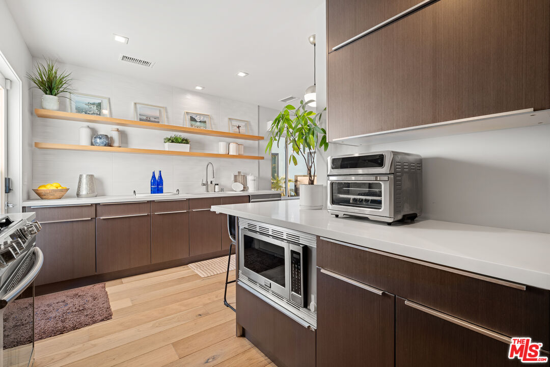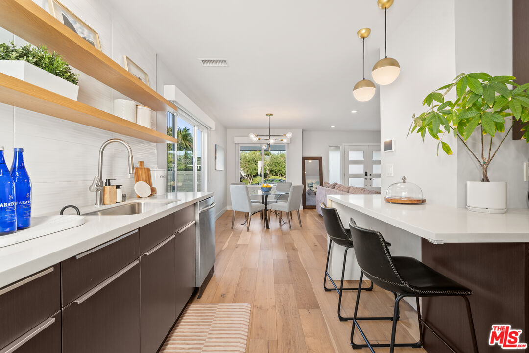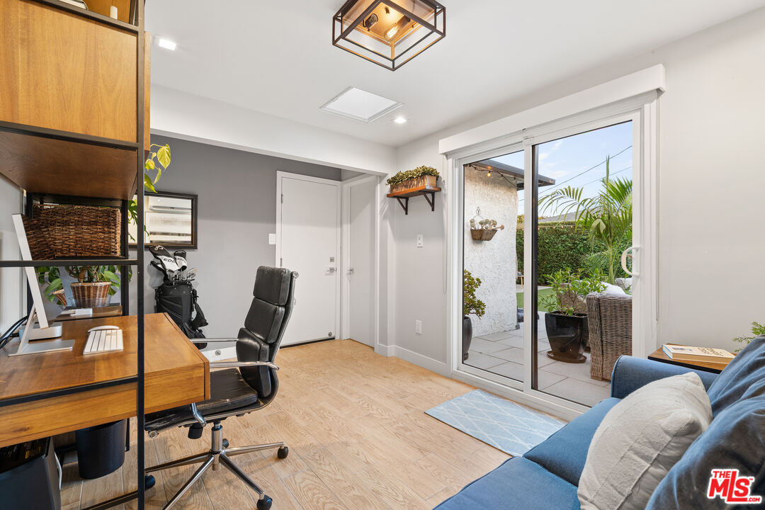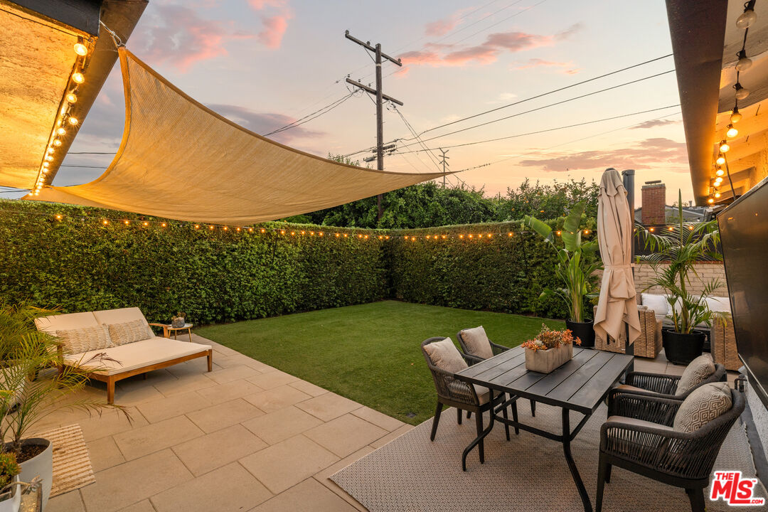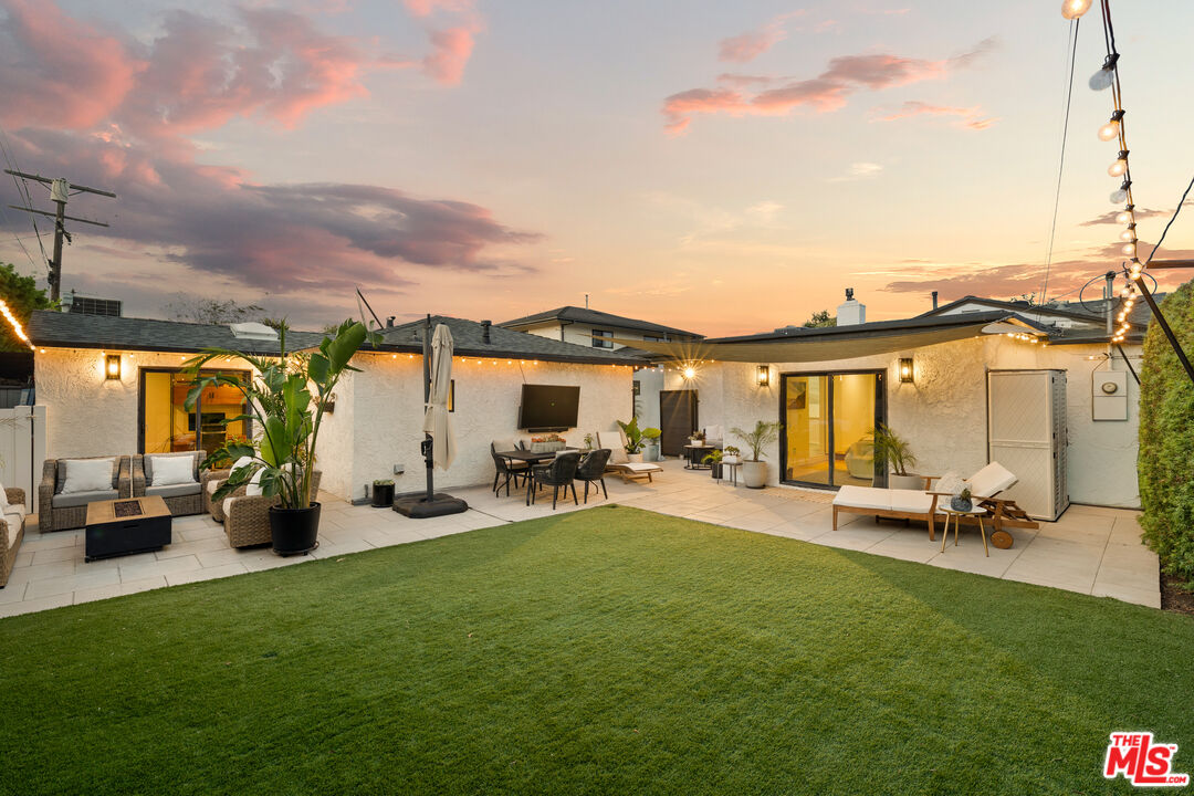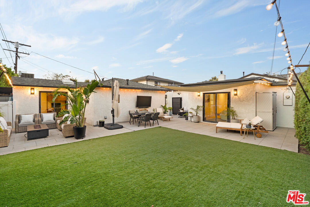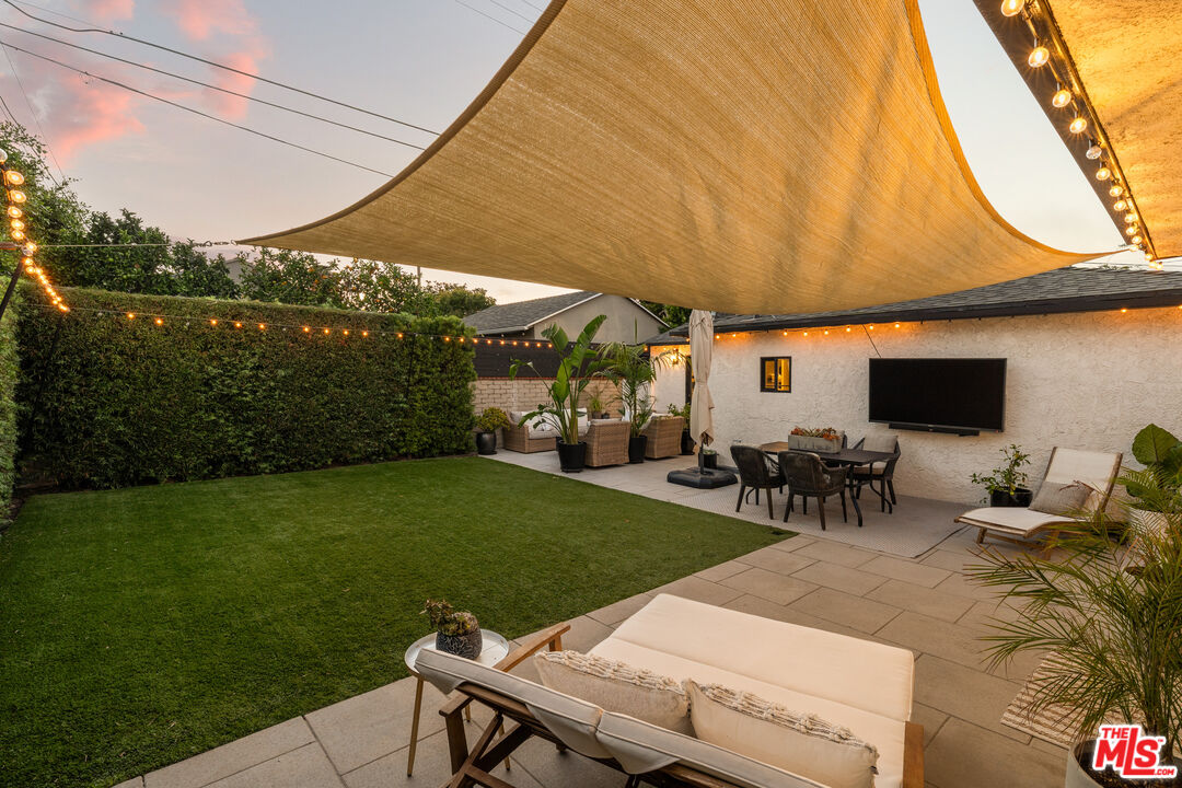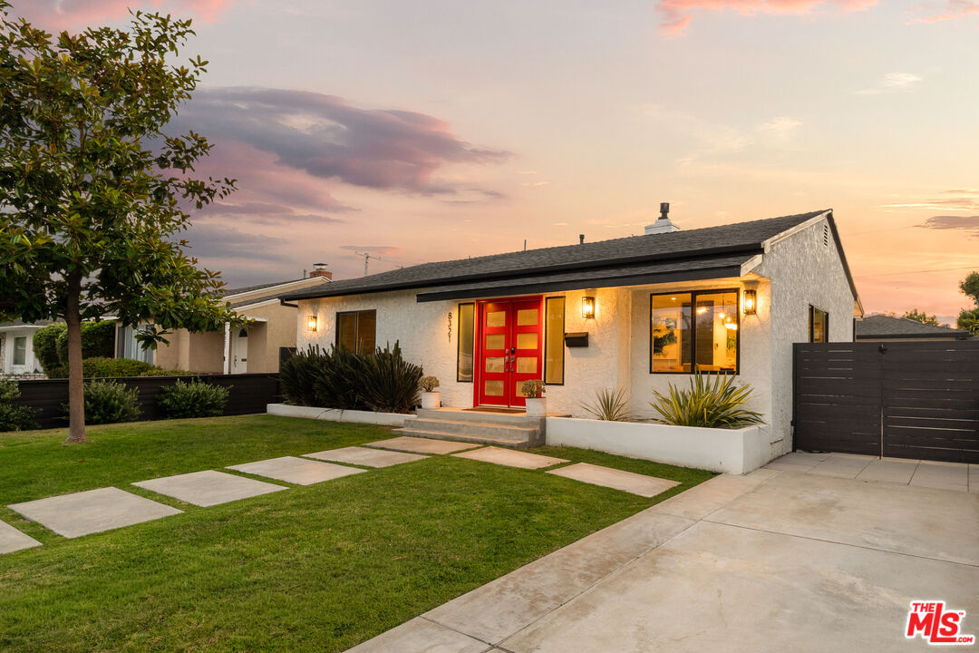 Discover the perfect blend of modern comfort and expansive outdoor living in this beautifully renovated smart home. With a fully enclosed front yard, a gated driveway with dual entries, and a lush backyard retreat, this property offers rare privacy and abundant space inside and out. Step through the gates into a dramatic double-door entry that opens to a light-filled great room. Designer wall coverings, custom lighting, and rich wood floors set a refined tone, while the open flow makes entertaining effortless. At the heart of the home, a wraparound chef's kitchen invites gathering with quartz countertops, sleek cabinetry, a breakfast counter, and premium appliances. The primary suite serves as a private sanctuary, complete with a spa-inspired bath featuring a freestanding soaking tub, walk-in shower, dual vanities, and a custom-built walk-in closet. Two additional bedrooms share a stylishly updated bath, ideal for family or guests. Outdoors, the home truly excels. The enclosed front yard provides curb appeal and security, while the backyard unfolds as a sun-drenched oasis with lush green lawn and multiple patios designed for entertaining, dining, or simply relaxing. Behind the detached garage, a versatile flex space offers endless potential as a studio, home office, or guest quarters. Upgrades deliver peace of mind, including newer plumbing, electrical, roof, windows, and HVAC. Smart home automation enhances everyday living with app-controlled lighting, climate, keyless entry, a Ring doorbell, Wi-Fi enabled automatic driveway gates, and a whole-home water filtration system. This is more than a home - it is a lifestyle. A rare opportunity to enjoy contemporary elegance, modern convenience, and exceptional outdoor living all in one.