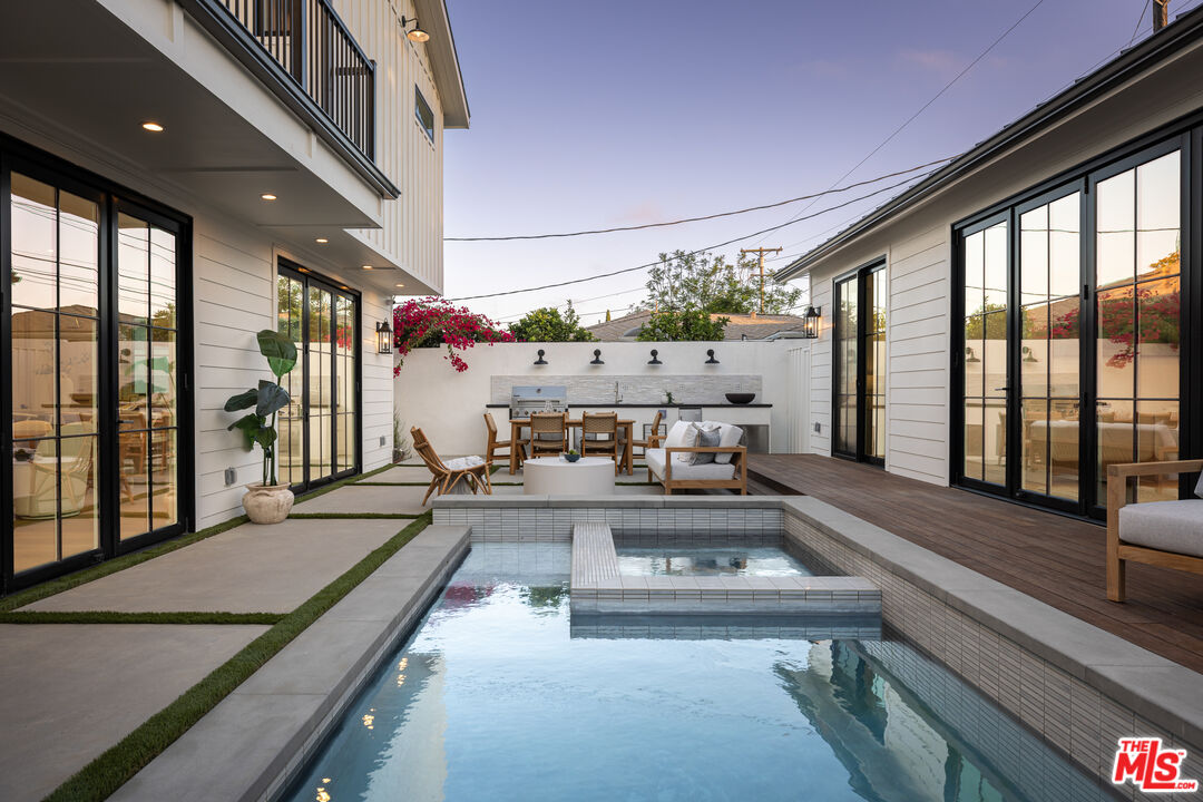 Experience the pinnacle of coastal living in this newly constructed, custom California Coastal estate an exceptional collaboration between Live Inspired Homes, JRD Construction, and renowned coastal designer Molly Waggoner. Thoughtfully conceived as a private compound, this residence evokes the elegance of Montecito with a distinctly modern sensibility. A herringbone brick walkway leads through manicured grounds to the 3,400 sq ft main residence, where high ceilings, abundant natural light, and refined architectural elements establish a sense of both scale and serenity. Each space has been curated by Waggoner, whose two decades of design expertise are reflected in every hand-selected finish - from the artisanal tilework and wide-plank hardwood floors to the tongue-and-groove ceilings and custom wall treatments. The dramatic stone facade wrapping the entry hall introduces a warm, textural sophistication that continues throughout this exceptional home. The central kitchen offers the perfect balance of form and function. Anchored by a substantial center island, this space features Thermador appliances, a custom designed hood with brass details and an expansive walk-in pantry outfitted with custom built-in cabinetry. Designed with both entertaining and everyday living in mind, it opens seamlessly to the home's main living areas, creating a fluid, sunlit space where gatherings unfold with ease. The main residence offers four ensuite bedrooms and five baths, including a versatile first-floor suite that opens to a serene patio - ideal for guests or a tranquil home office. Upstairs, a central family lounge connects three additional bedrooms, each with its own exquisitely tiled ensuite bath and custom closets. The primary suite overlooks the lush backyard retreat and features a private balcony, oversized walk-in closet, and spa-like bath with soaking tub and multi-head shower. Also on this level, a lavish utility room combines elegance with practicality, featuring custom cabinetry, abundant built-in storage, and a dedicated sink, elevating daily routines with refined ease. Beyond the interiors, an extraordinary outdoor sanctuary awaits. A sunlit pool with baja shelf, infinity-edge spa, and a fully outfitted outdoor BBQ kitchen are framed by an expansive patio and elevated deck - merging the best of resort and residential living. The pool gracefully links the main residence to a fully equipped 650 sq ft ADU, complete with a great room area, private bedroom and bath, full kitchen, laundry, office nook, and an outdoor pool bathroom, offering exceptional versatility and opportunity. A bespoke mudroom and direct-access two-car garage complete the home's thoughtful layout. Set within a close-knit, highly desirable neighborhood with premier access to top-tier schools, the beach, golf, tennis, shopping, dining, and LAX, this estate is a rare opportunity to live beautifully, live effortlessly, and live inspired.