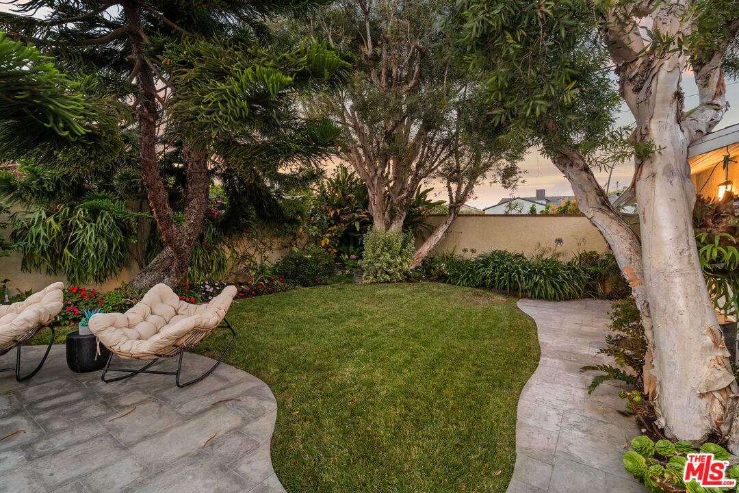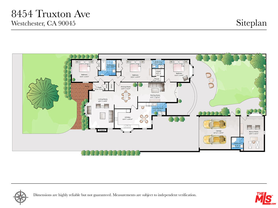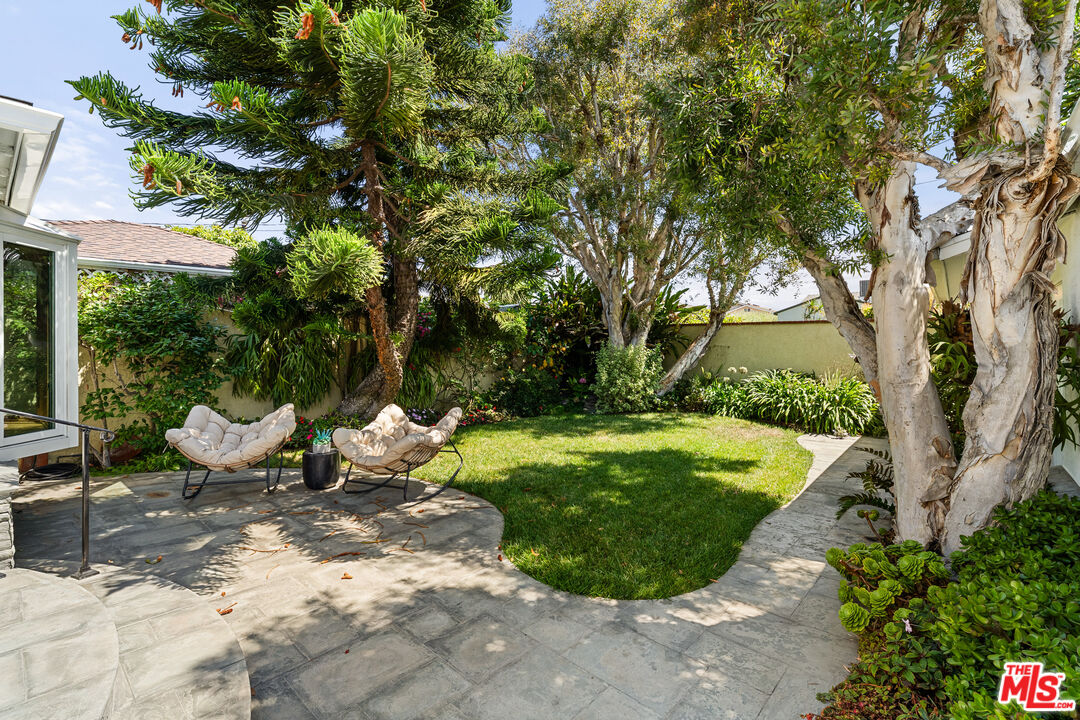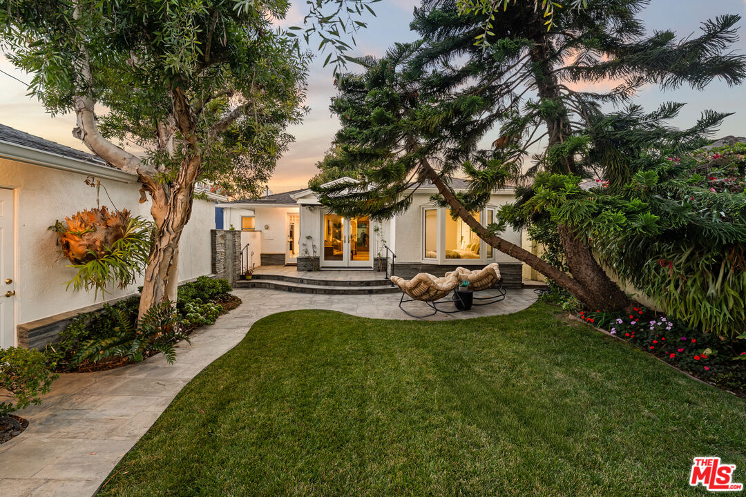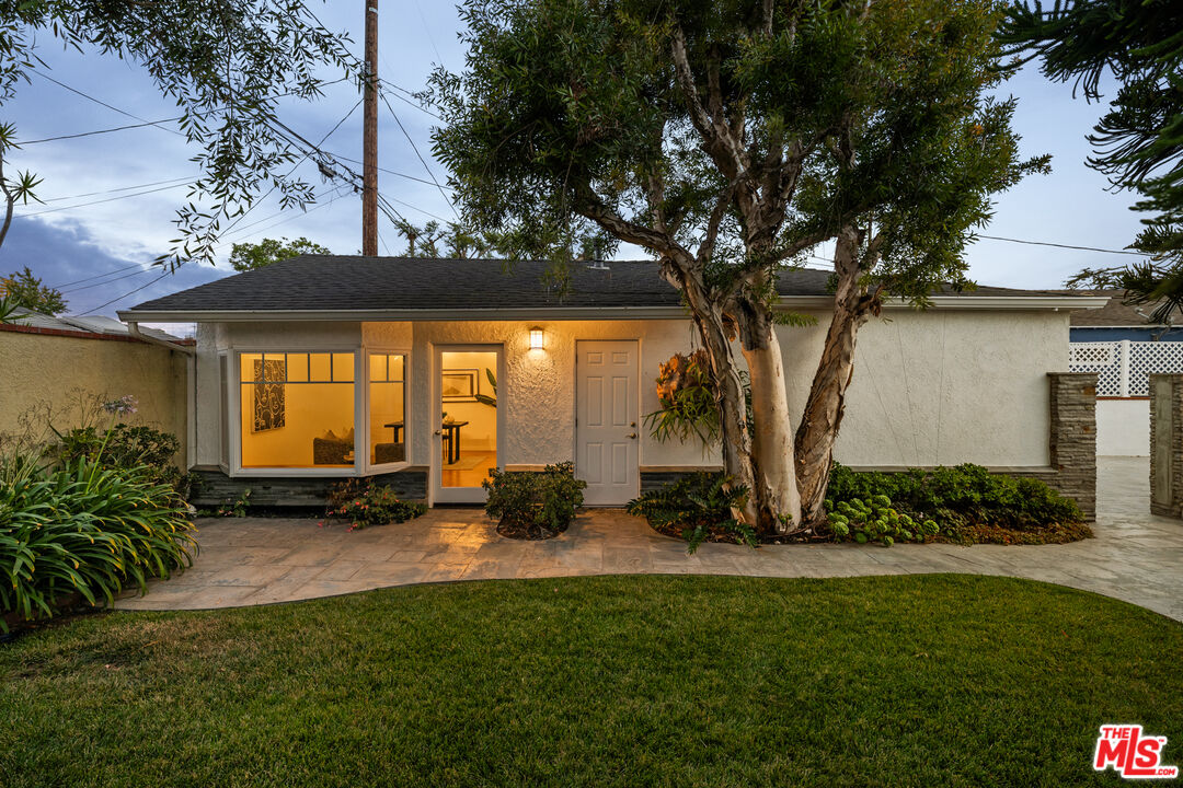 Welcome to 8454 Truxton Avenue, where classic Westchester charm meets effortless California living. From the moment you arrive, the inviting covered porch framed by a stately magnolia tree sets the tone for a home that's both warm and elegant. Step inside to a sunlit living room with a cozy fireplace and a bay window overlooking the beautifully landscaped front yard. The generous dining room flows seamlessly between the living and family rooms, creating an ideal space for gatherings large or small. At the heart of the home, the kitchen is both functional and stylish, boasting black granite countertops, crisp white cabinetry with a built-in secretary desk, newer appliances, a bay window above the sink, and a bright breakfast nook. The family room opens through French doors to the backyard, inviting indoor-outdoor living at its best - perfect for morning coffee, weekend BBQs, or evening cocktails under the stars. The backyard is a private retreat, featuring mature shade trees - including a striking Norfolk Island Pine - lush plantings, a grassy lawn, and a stamped concrete patio ready for alfresco dining, entertaining, or quiet afternoons soaking up the sun. Three spacious bedrooms are complemented by a remodeled bathroom with a step-in shower, separate soaking tub, and modern finishes, plus a convenient dual-entry half bath. Behind the detached two-car garage, a versatile bonus room with its own three-quarter bath is perfect for guests, a home office, or a creative studio. Ample garage storage and a long stamped concrete driveway provide plenty of parking for family and friends. Additional highlights include oak hardwood floors throughout, central air and heat, and a newer roof (2020), blending timeless quality with modern comfort. Nestled in one of Westchester's most desirable neighborhoods, 8454 Truxton Avenue offers a lifestyle of relaxed sophistication, effortless entertaining, and classic charm - a home you'll be proud to welcome friends and family to.